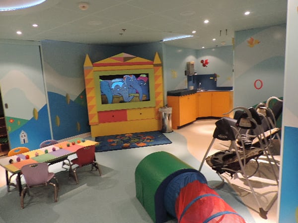 Most parents are familiar with the fact that all family friendly cruise lines offer complimentary child care in their kids camps. Parents need to know there is a minimum age for children to be allowed in these free child care programs. Generally the age is between 2-3 years old and most require all kids must be potty trained. Most ships will allow parents with infants and toddlers to visit the kids clubs and play during very limited hours. A parent or responsible adult MUST be present at all times during these playgroups.